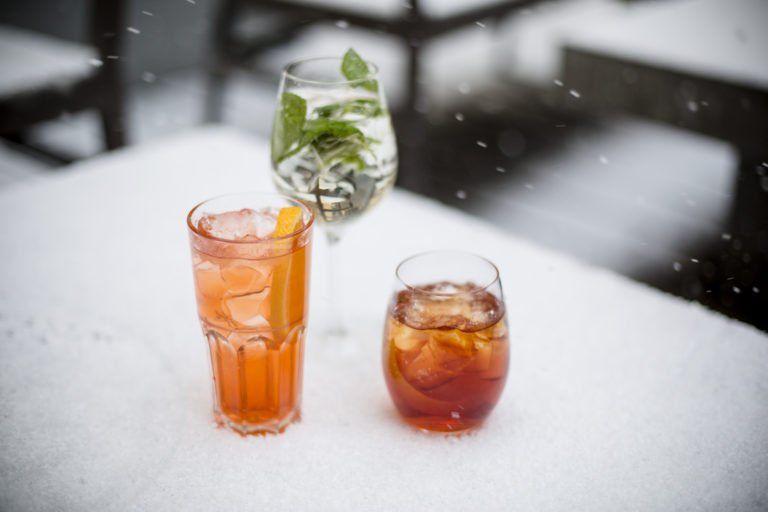 “Väkevään viiniin ja kuohuviiniin pohjautuvat juomasekoitukset ovat selkeästi suosituimpia ja tunnetuimpia”, Miikka avaa asiakkaiden suosikkeja. “Vaikkapa Aperol Spritz on ehdoton terassijuoma, ja Kir Royal elegantti mustaherukkalikööriä ja kuohuviiniä sisältävä cocktail. Mimosaan sekoitetaan niin ikään kuohuviiniä ja appelsiinimehua.”